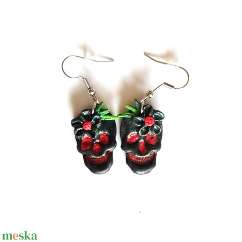 Éjféli Virágkoponya - fülbevaló Halloweenre
