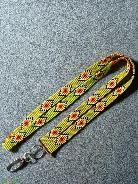Gyöngyszövött nyakba akasztós kulcstartó / kartyatarto