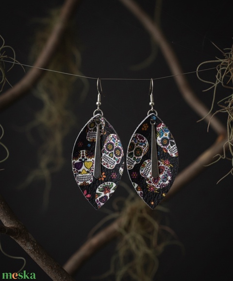 Sugarskull koponya koponyás halloween fülbevaló műbőr
