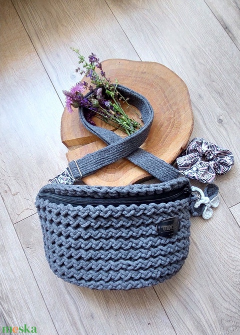 - Anyaga: pamut, vászon, zsinórfonal, cipzár, újrahasznosított, cérna, fém