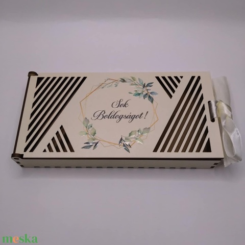 Sok Boldogságot esküvői pénzátadó doboz – UV nyomott, 2 cm, szalagos