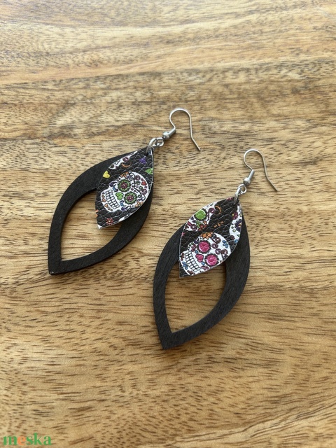 Sugarskull koponya koponyás halloween fülbevaló műbőr
