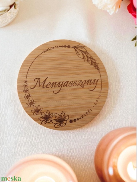 Személyre szabott bambusz poháralátét – Ültetőkártya és köszönőajándék egyben