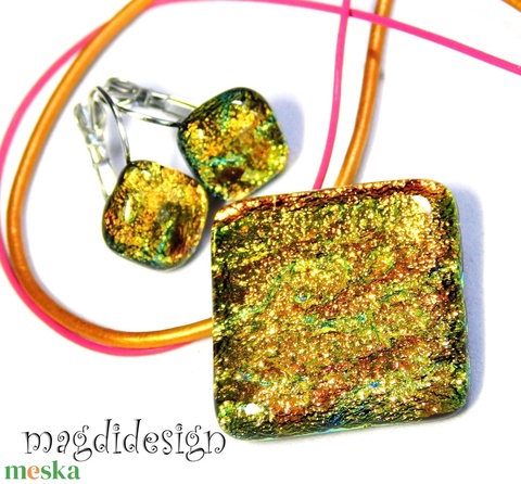 Arany-lazac üvegékszer szett nyaklánc kapcsos fülbevaló
