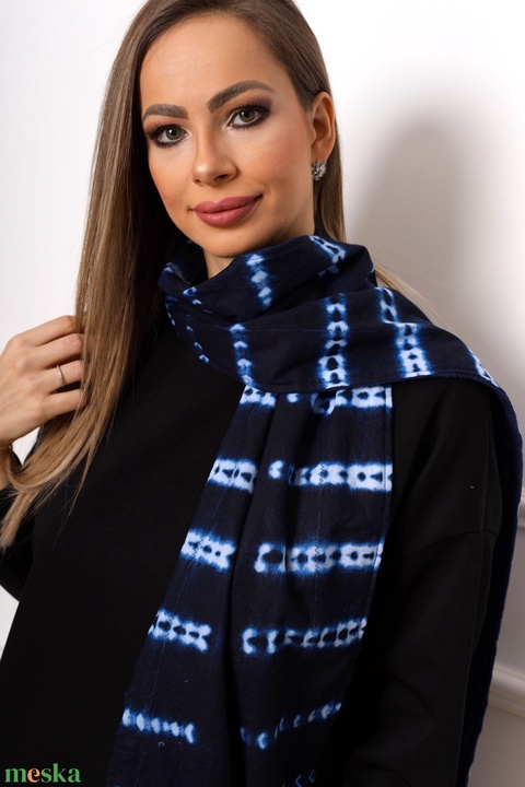Ez a gyönyörű, kézzel készített pamut sál (mérete: 180x25 cm) ideális választás mindenki számára, aki értékeli az egyedi, minőségi kiegészítőket, az egyedi dizájnt. A sál különleges mintázatú, külső része 100% pamutból készült, így nemcsak kényelmes, hanem tartós is. A bélése minky anyagból készült, amely az egyik legpuhább, legkényelmesebb viselet.