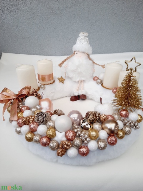 - Anyaga: műszörme, fa, selyemszalag, gyertya