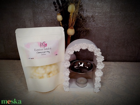 Apró virágokkal díszített kerámia párologtató és 100 gramm illatviasz.