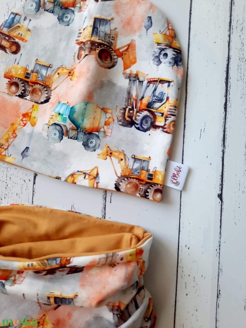 Markoló, targonca, darusautó sapka-sál szett (48-50 cm)