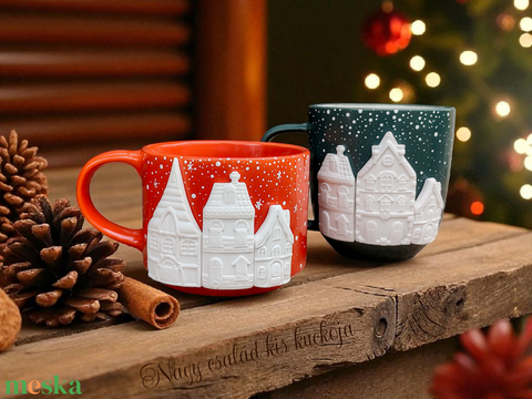 otthon & életmód, konyhafelszerelés, tálalás, tálalás, bögre & csésze, tél, hó, hóesés, karácsony, ház, házikó