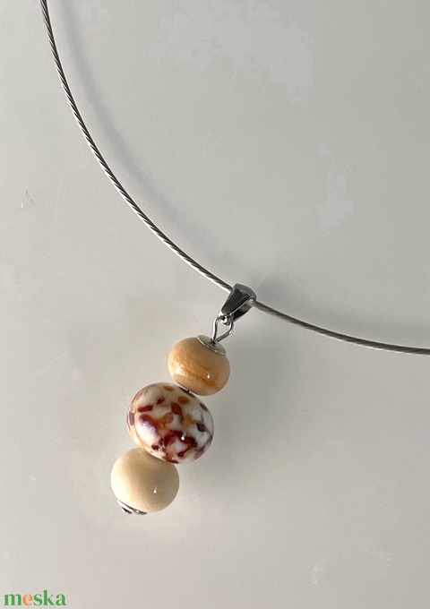 Beige lámpagyöngy nyaklánc, üvegékszer