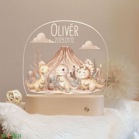 Akril éjjeli fény nyomtatott mintával- Dínók