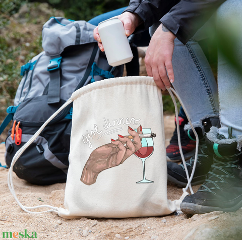 Pamut tornazsák vicces "Girl dinner" grafikával
