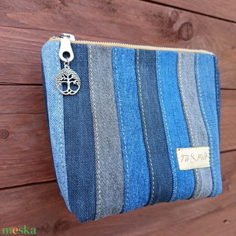 - Anyaga: fém cipzár, újrahasznosított farmer, újrahasznosított pamut vászon, merevitő