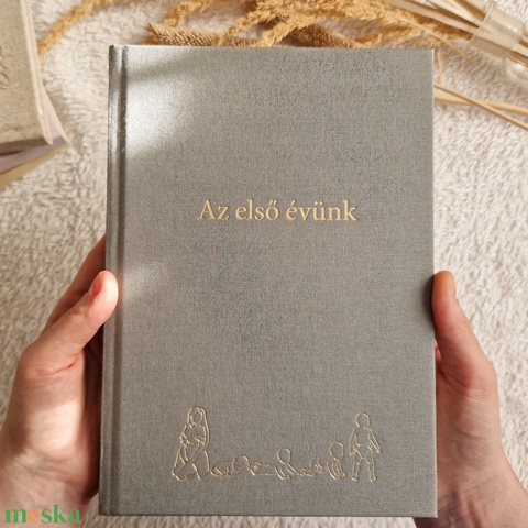 Szürke Babanapló: egyedi vászonborítású baba-mama napló