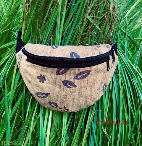 - Anyaga: cipzár, hevederpánt, bélés vászon, műanyag csat, dekor szövet
