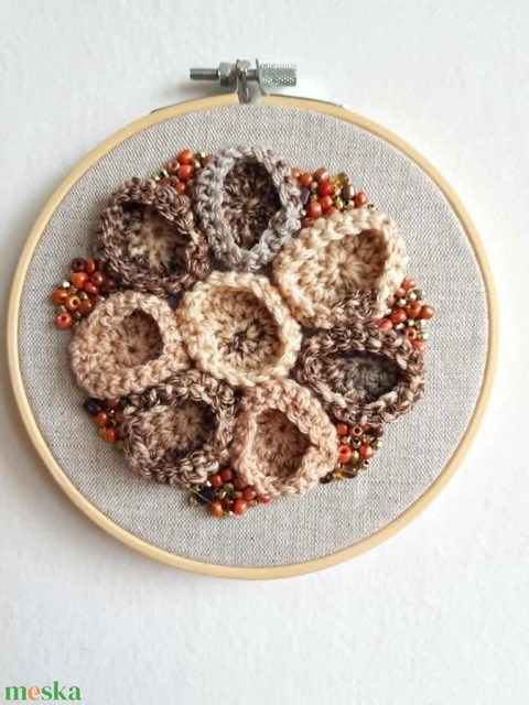 Különlegessége, hogy a keretet hímzőráma helyettesíti, ettől teljesen újszerű, egyedi darab.