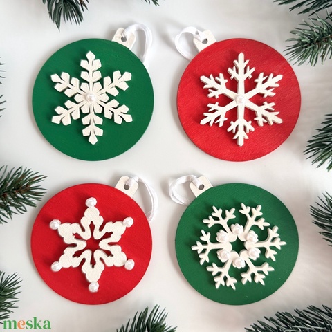 Elegáns karácsonyfadísz szett – kézzel festett hópelyhes fa dekoráció