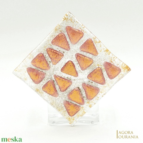 - Anyaga: átlátszó üveg, bordó üvegfesték, arany üvegfesték, fekete üvegpor, átlátszó üveg tartó rész