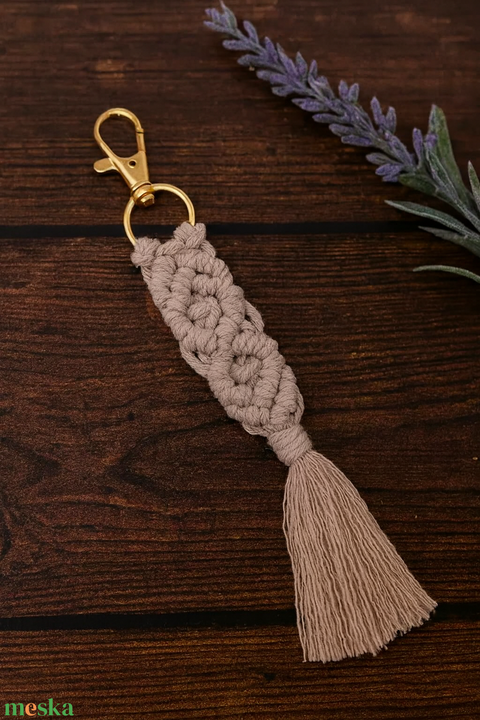 Makramé kulcstartó – tejeskávé