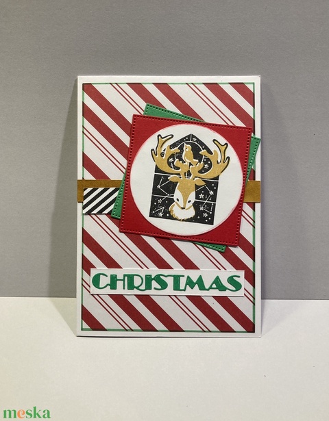 Szarvas karácsonyi képeslap, ajándékkísérő, üdvözlőlap