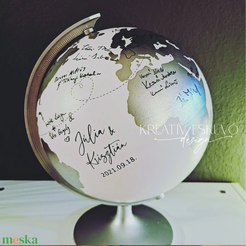 Egyedi esküvői földgömb – pénzgyűjtő – vendégkönyv – borítékgyűjtő
