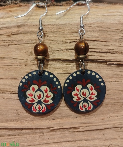 fa, akrilfesték, hipoallergén fém, gyöngy