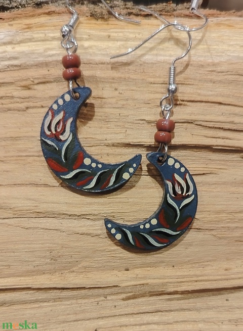 fa, akrilfesték, hipoallergén fém, gyöngy