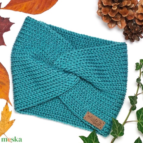 Kék kötött fülpánt / csavart fülmelegítő / fülvédő
