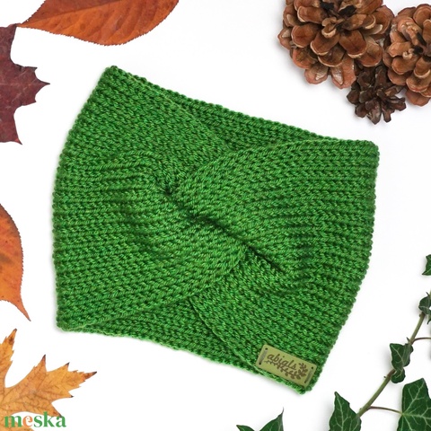 Zöld kötött fülpánt / csavart fülmelegítő / fülvédő