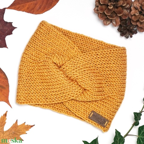 Mustárszínű kötött fülpánt / csavart fülmelegítő / fülvédő