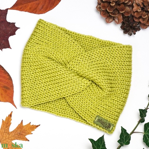 Banánzöld kötött fülpánt / csavart fülmelegítő / fülvédő