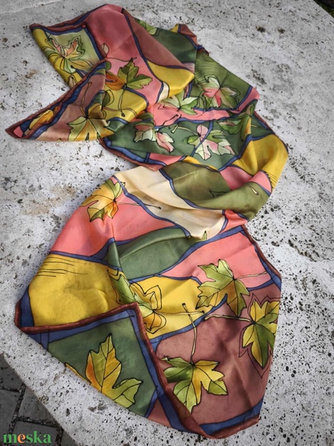 Kézi festésű valódi hernyóselyem sál-Őszi levelek