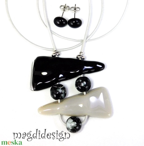 ekete beige absztrakt üvegékszer szett nyaklánc, stiftes fülbevaló