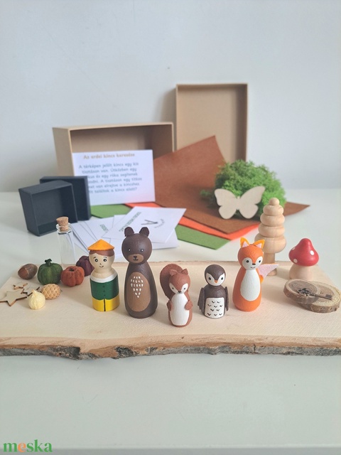 Erdei mesevilág - mesélő fabábu készlet (Fantasy Box) - kézzel festett fafigurák gyerekeknek 3 készletben