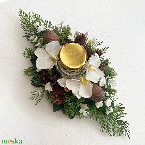- Anyaga: toboz, selyemvirág, szalag, műanyagtál, mécses