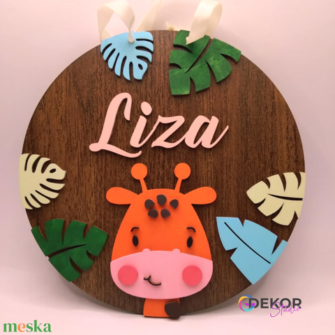 Egyedi fa ajtókopogtató gyerekeknek - Zsiráf