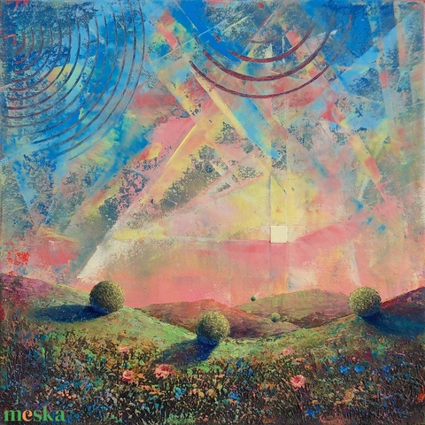Vibráló csend - Absztrakt tájkép, olajfestmény keretezve, akasztóval - azonnal falra akasztható.