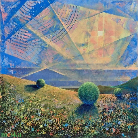 Lélekhorizont - Absztrakt tájkép, olajfestmény keretezve, akasztóval - azonnal falra akasztható.