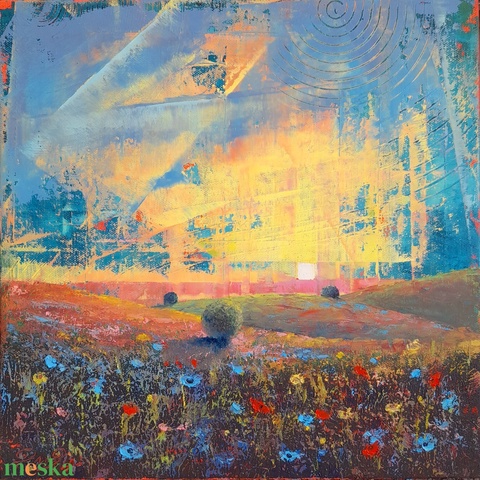 Alföld 1. - Absztrakt tájkép, olajfestmény keretezve, akasztóval - azonnal falra akasztható.