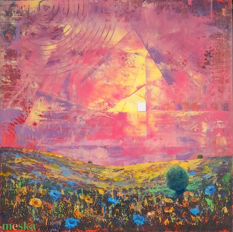 Alföld 2. - Absztrakt tájkép, olajfestmény keretezve, akasztóval - azonnal falra akasztható.