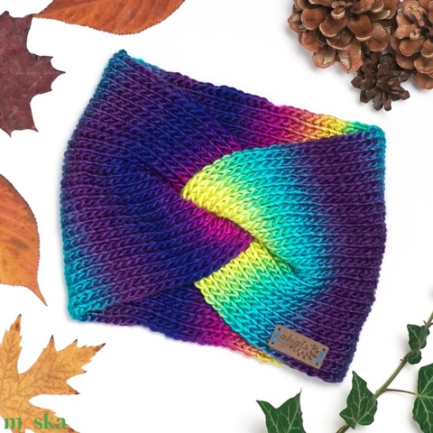 Szivárványszínű kötött fülpánt / csavart fülmelegítő / fülvédő