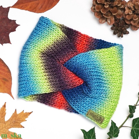 Neon színátmenetes kötött fülpánt / csavart fülmelegítő / fülvédő