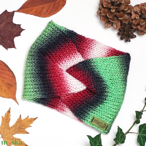 Görögdinnyeszínű színátmenetes kötött fülpánt / csavart fülmelegítő / fülvédő