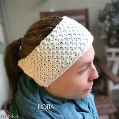 Krémfehér fejpánt - puha meleg téli fülmelegítő - puha gyapjús fonalból kötve