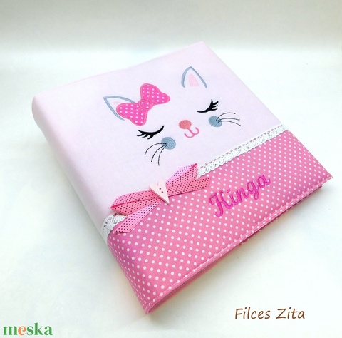 Marie cicás baba fotóalbum hímzett névvel - cicás fényképalbum névhímzéssel