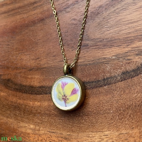 Hollóházi mentett darabok - virágos porcelán nyaklánc - pici medál nemesacél lánccal