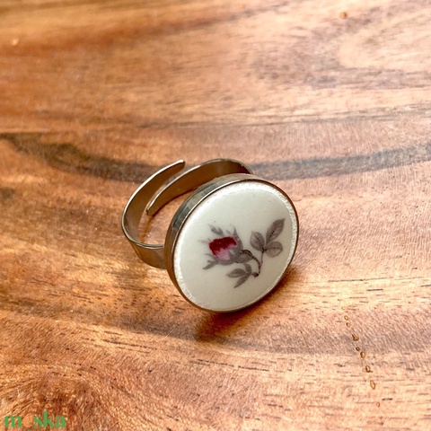 Zsolnay mentett darabok - nemesacél gyűrű - rózsabimbós, állítható