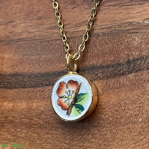 Aranyozott pici medál - Herendi mentett darabok - kisvirágos medál vagy nyaklánc
