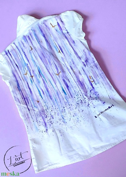 Művészet amit viselhetsz. Szabad kézzel festett nő rövid ujjú ing