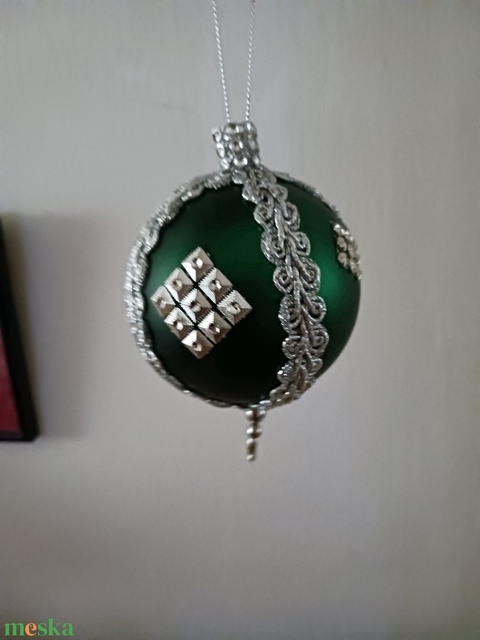 Zöld-ezüst, diszitett gömb